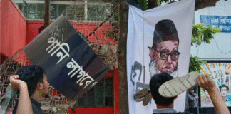 ডাকসুর সামনে গোলাম আযমের ছবিতে জুতা নিক্ষেপ