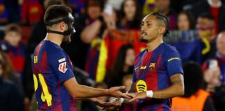 রাফিনিয়ার জোড়া গোলে জয় পেল বার্সেলোনা