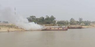 টাঙ্গুয়া হাওরের পর্যটকবাহী হাউসবোটে অগ্নিকাণ্ড, অল্পের জন্য রক্ষা