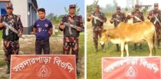 পঞ্চগড়ের বোদায় সীমান্ত এলাকায় ১ জন চোরাকারবারি সহ ভারতীয় গরু আটক