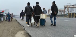 বিমানবন্দর সড়কে গাড়ি নেই,হেঁটে গন্তব্যে যাচ্ছেন মানুষজন