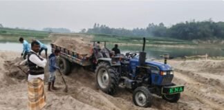 করতোয়া নদী থেকে অবৈধভাবে বালু উত্তোলন গ্রেপ্তার ২