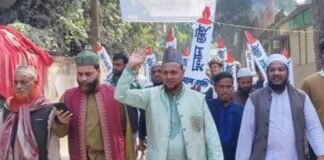 জয়পুরহাট-১ আসনে ধানের শীষের প্রার্থীর বিশাল নির্বাচনী মিছিল