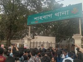 বিচার দাবিতে ফের শাহবাগ থানার সামনে ঢাবি শিক্ষার্থীদের বিক্ষোভ