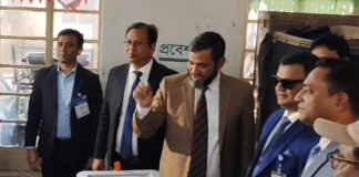 ভিকারুননিসা কেন্দ্রে ভোট দিলেন নির্বাচন কমিশনার সানাউল্লাহ