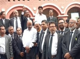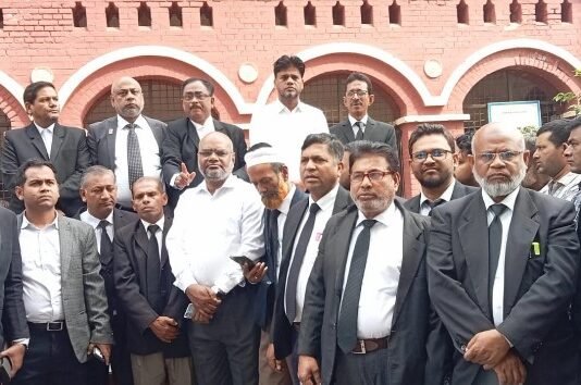 আদালত বর্জন করে বরিশালে আইনজীবীদের বিক্ষোভ