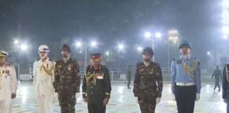 শহীদ মিনারে তিন বাহিনীর প্রধানদের সম্মিলিত শ্রদ্ধা