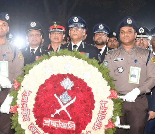 একুশের প্রথম প্রহরে আইজিপির শ্রদ্ধা নিবেদন