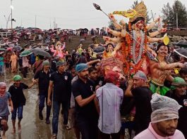 চোখের জলে মায়ের প্রতিমা বিসর্জন