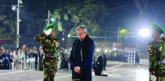 শহীদ মিনারে তিন বাহিনীর প্রধানদের সম্মিলিত শ্রদ্ধা