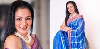 রুনা খান নজর কাড়লেন নীল-বেগুনি শাড়িতে