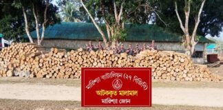 বাঘাইছড়িতে বিজিবির অভিযানে বিপুল পরিমাণ সেগুন কাঠ জব্দ