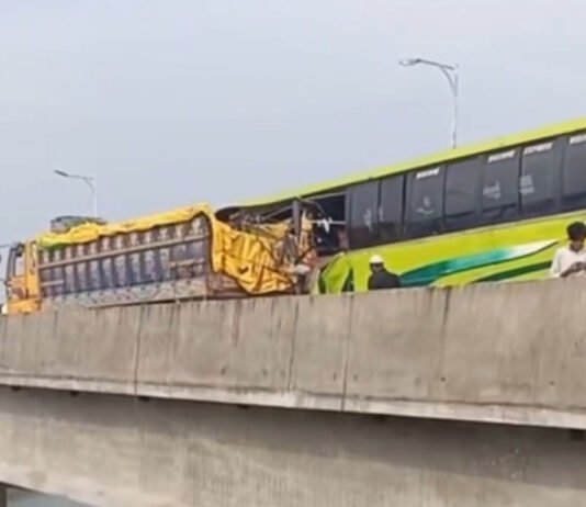 এক্সপ্রেসওয়ের আড়িয়াল খাঁ সেতুতে বাস-ট্রাক সংঘর্ষে নিহত ৩, আহত ১৫