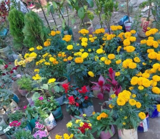 ফুটপাতে জমে উঠেছে বাহারি ফুলের রঙিন শোভা