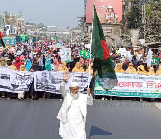 ভোটের মাঠে নারী হেনস্তায় প্রতিবাদে বগুড়ায় জামায়াতের বিক্ষোভ মিছিল