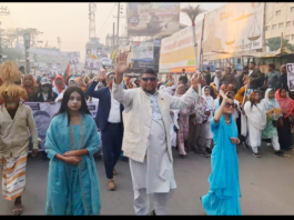 জয়পুরহাট-১ আসনে ধানের শীষের প্রার্থীর বিশাল নির্বাচনী মিছিল