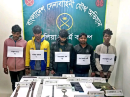 নড়াইলে গভীর রাতে যৌথ অভিযানে অস্ত্র ও মাদকসহ পাঁচজন আটক