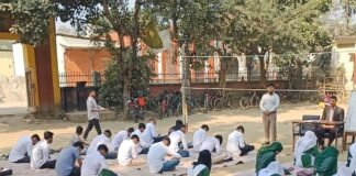 মনোহরদীতে শ্রেণীকক্ষ সংকটে মাঠে বসে পাঠ নিচ্ছে শিক্ষার্থীরা