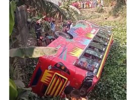 যাত্রীবাহী বাস উল্টে খালে, আহত ১৭