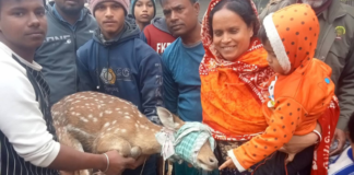 লোকালয়ে আসা সুন্দরবনের হরিণ উদ্ধারের পর বনাঞ্চলে অবমুক্ত