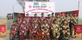 দিনাজপুর সীমান্তে বিজিবি-বিএসএফ ব্যাটালিয়ন কমান্ডার পর্যায়ে সৌজন্য সাক্ষাৎ