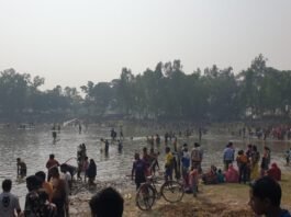 ঠাকুরগাঁওয়ে রুহিয়ায় ঐতিহ্যবাহী সেনিহাড়ী পুকুরে মাছ ধরার উৎসব