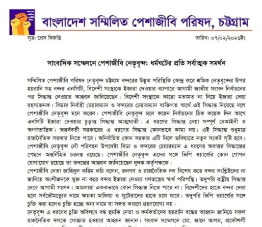 চট্টগ্রাম বন্দরের ধর্মঘটের প্রতি সর্বাত্মক সমর্থন: পেশাজীবী নেতৃবৃন্দ
