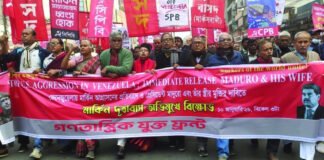মার্কিন দূতাবাস অভিমুখে যুক্তফ্রন্টের বিক্ষোভ, ভেনেজুয়েলায় আগ্রাসনের প্রতিবাদ