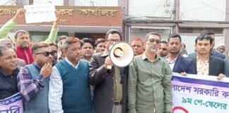 নেত্রকোনায় নবম জাতীয় পে-স্কেলের দাবিতে সরকারি কর্মকর্তারাদের বিক্ষোভ
