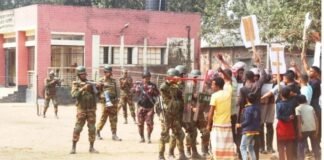 ঘোড়াঘাটে সহিংসতা ঠেকাতে যৌথ বাহিনীর মহড়া