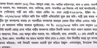 ক্রয়কৃত পরিবহনের কাগজ চাইতে গিয়ে হুমকি; সদর থানায় সাধারণ ডায়েরি