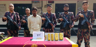 মহেশপুর সীমান্তে ৭৭ লাখ টাকার স্বর্ণসহ পাচারকারী আটক
