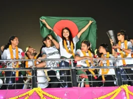 সাফ জয়ী নারী ফুটবল দলের উল্লাসময় সংবর্ধনা