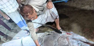 টেকনাফে জেলেদের জালে ধরা পড়েছে ২০০ কেজির ‘পাখি মাছ’