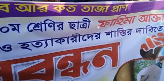নোয়াখালীতে ফাহিমা হত্যার বিচারের দাবিতে মানববন্ধন