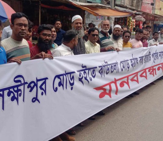 রাজশাহীর লক্ষীপুরে ওয়ানওয়ে খুলে দেওয়ার দাবিতে মানববন্ধন