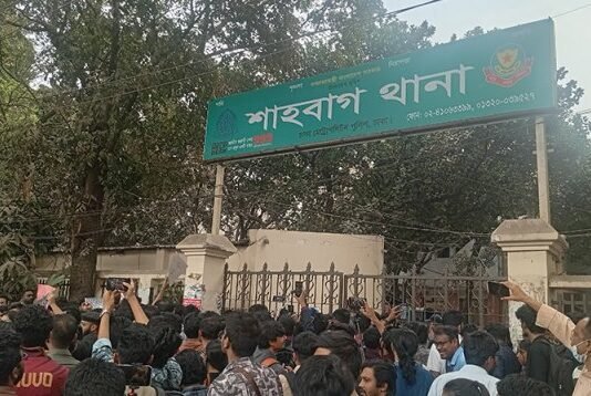 বিচার দাবিতে ফের শাহবাগ থানার সামনে ঢাবি শিক্ষার্থীদের বিক্ষোভ