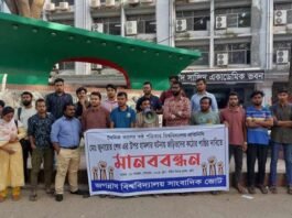 ল্যাব রিপোর্টে স্বাক্ষরের অধিকারে নোবিপ্রবিতে মানববন্ধন