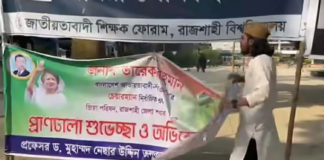 তারেক রহমানকে শুভেচ্ছা জানিয়ে শিক্ষক ও জিয়া পরিষদ নেতার টানানো ব্যানার...