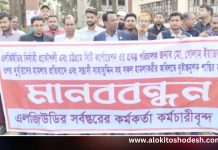 চট্রগ্রামে এলজিইডি’র নির্বাহী প্রকৌশলীর ওপর হামলার প্রতিবাদে রাজবাড়ীতে মানববন্ধন