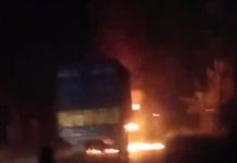 ফেনীতে কাভার্ডভ্যানে আগুন