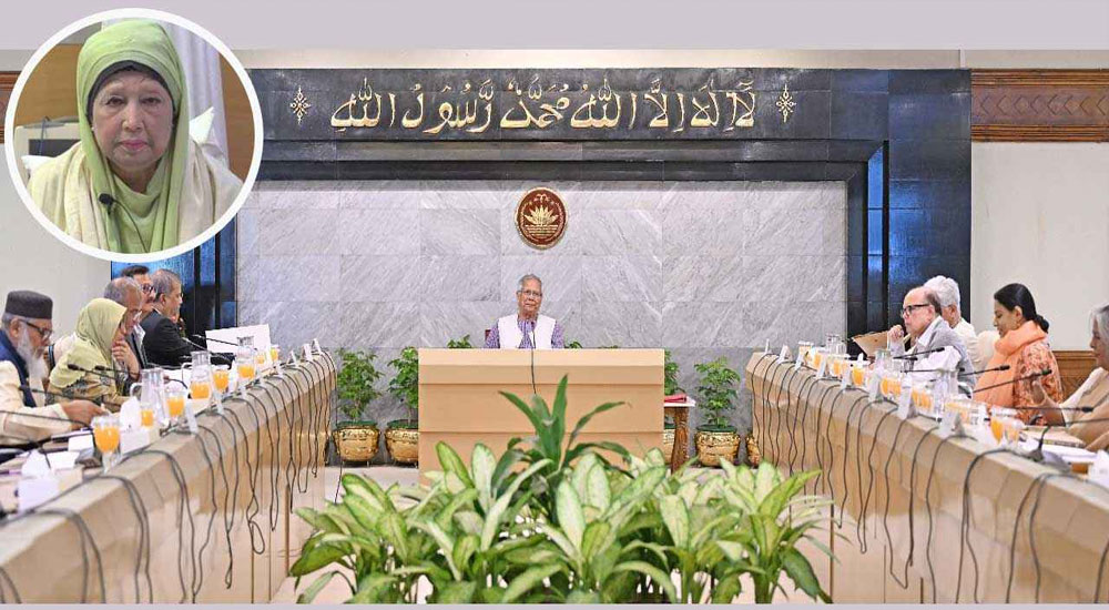 আলোকিত স্বদেশ প্রতিবেদক: প্রধান উপদেষ্টা অধ্যাপক মুহাম্মদ ইউনূসের সভাপতিত্বে বিশেষ সভা করেছে অন্তর্বর্তী সরকারের উপদেষ্টা পরিষদ। সভায় বিএনপি চেয়ারপারসন খালেদা জিয়ার দ্রুত আরোগ্য কামনা করে মোনাজাত করা হয়।