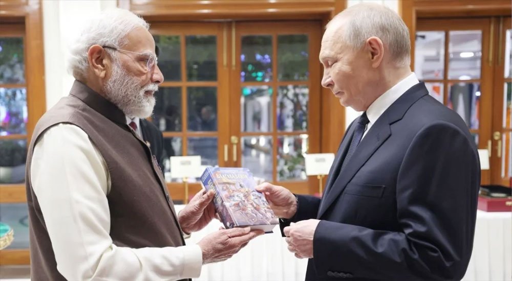 অনলাইন ডেস্ক: রাশিয়ার প্রেসিডেন্ট ভ্লাদিমির পুতিনকে রুশ ভাষায় অনুবাদকৃত গীতা উপহার দিয়েছেন ভারতের প্রধানমন্ত্রী নরেন্দ্র মোদি। বৃহস্পতিবার (৪ ডিসেম্বর) মাইক্রো ব্লগিং সাইট এক্সে এ নিয়ে একটি পোস্ট দেন মোদি। এতে তিনি লিখেছেন, রুশ প্রেসিডেন্ট পুতিনকে এক কপি গীতা উপহার দিয়েছি। বিশ্বব্যাপী লাখ লাখ মানুষকে অনুপ্রেরণা দেয় গীতা।