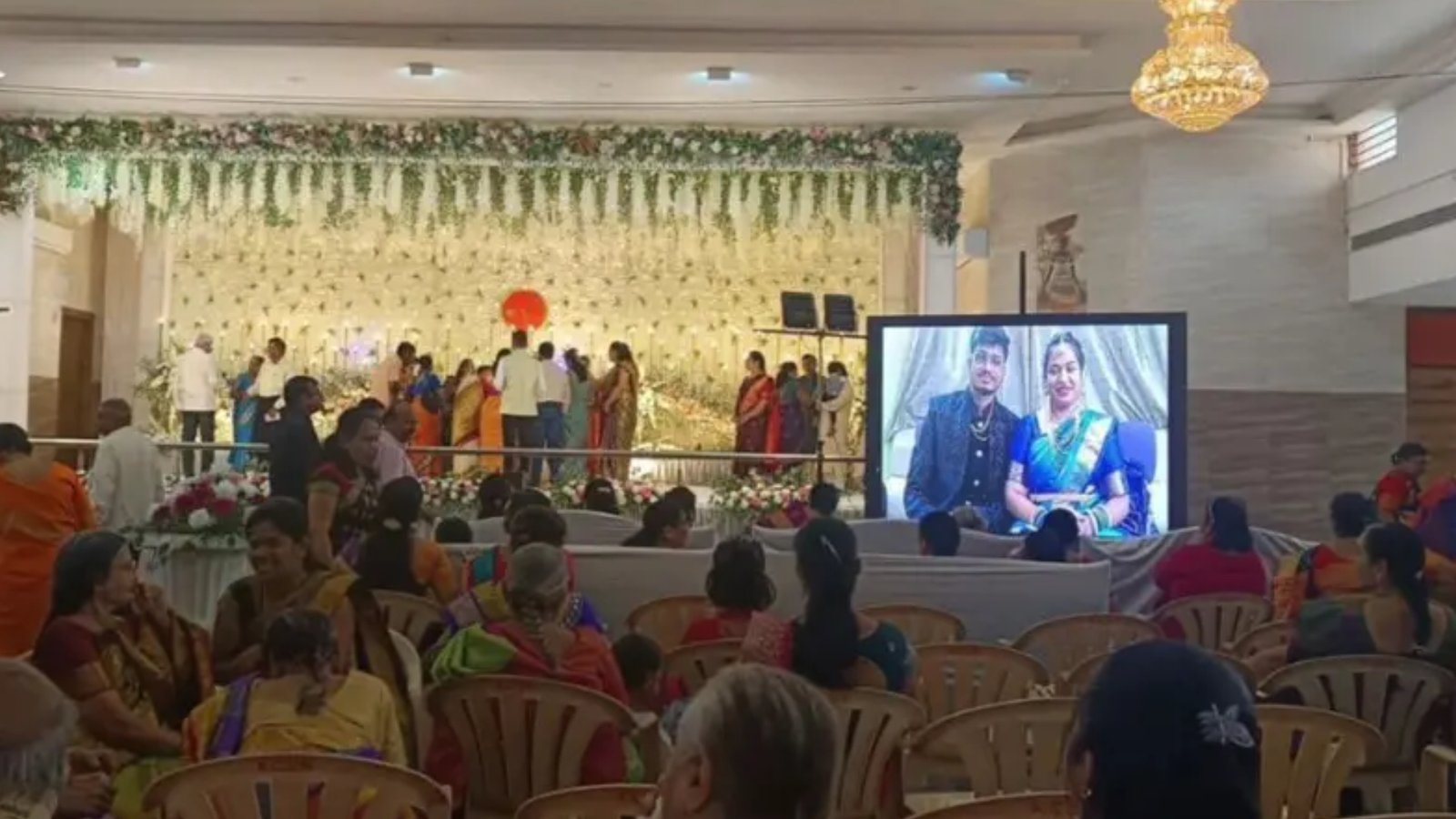 বিয়ের অনুষ্ঠানের মঞ্চে বড় টিভি লাগানো হয়েছিল। বর-কনের বেশে ক্যামেরার সামনে বসেছিলেন মেধা-সঙ্গম। আর কর্ণাটকে বিয়ের আচার-রীতি পালন করা হচ্ছিল। এ ভাবেই বিয়ের বাকি পর্ব সারলেন মেধা এবং সঙ্গম।