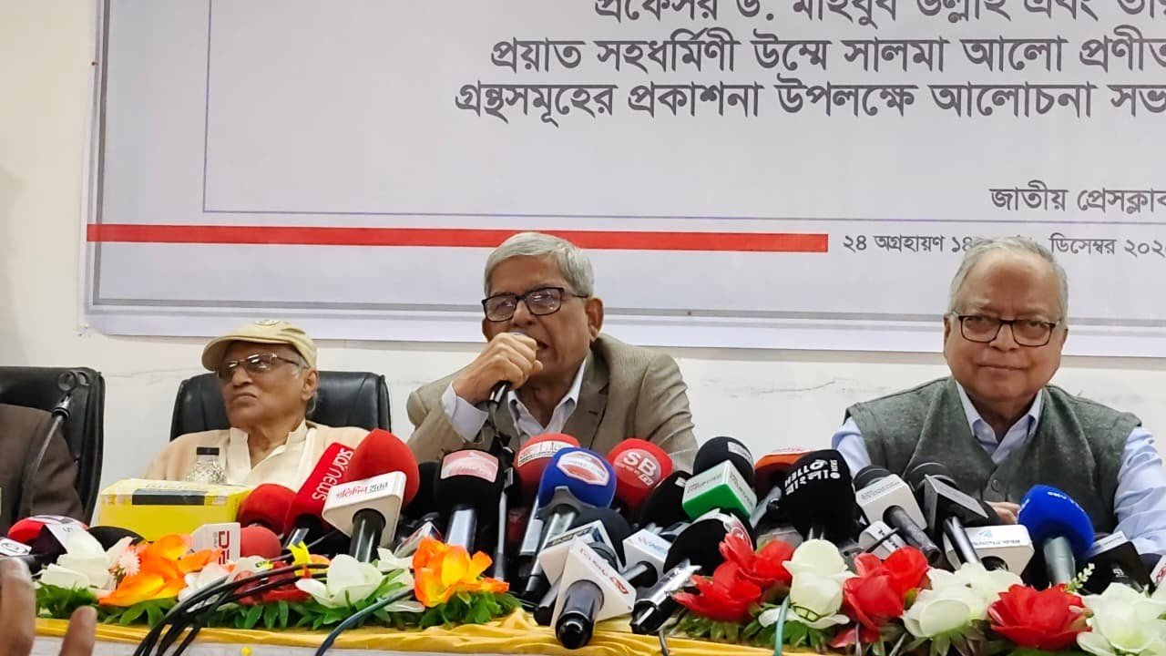 মঙ্গলবার (৯ ডিসেম্বর) রাজধানীর জাতীয় প্রেসক্লাবে ঢাকা বিশ্ববিদ্যালয়ের সাবেক অধ্যাপক ও বিশিষ্ট রাজনৈতিক বিশ্লেষক ড. মাহবুবউল্লাহর বইয়ের মোড়ক উন্মোচন অনুষ্ঠানে প্রধান অতিথির বক্তব্যে এসব কথা বলেন তিনি।