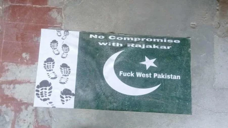 সম্প্রতি ঢাকা বিশ্ববিদ্যালয়ের (ঢাবি) কয়েকটি হলের প্রবেশপথে শিক্ষার্থীরা পাকিস্তানের প্রতীকী পতাকার ওপর পা রেখে প্রবেশ করে পাকিস্তানবিরোধী প্রতিবাদ জানিয়েছে।