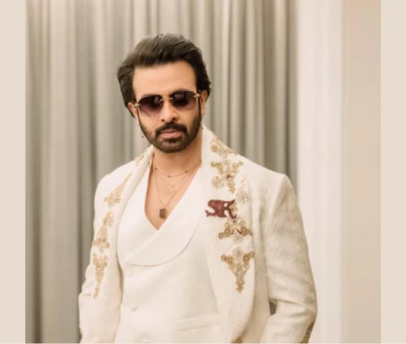 ধবধবে সাদা রঙের রাজকীয় শেরওয়ানি স্টাইল কোট ও ম্যাচিং প্যান্টে তাকে দেখাচ্ছিল একেবারে অভিজাত ও দাপুটে। কোটের কলার ও হাতায় সোনালি সুতোর নিখুঁত কারুকাজ লুকটিকে দিয়েছে আলাদা মাত্রা।