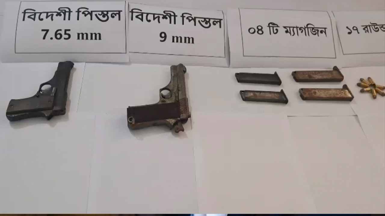 পুলিশ জানায়, গোপন সংবাদের ভিত্তিতে বালিয়া পুকুর গ্রামে সন্ত্রাসবিরোধী বিশেষ অভিযান চালায় জেলা গোয়েন্দা শাখা (ডিবি)। এসময় একটি ৭.৬৫ এমএম বোরের বিদেশি পিস্তল, দুটি ম্যাগজিনসহ ১০ রাউন্ড তাজা গুলি, একটি ৯ এমএম বোরের বিদেশি পিস্তল, দুটি ম্যাগজিনসহ ৭ রাউন্ড তাজা গুলি উদ্ধার করা হয়। অতিরিক্ত পুলিশ সুপার খোদাদাদ হোসেন জানান, উদ্ধারকৃত অস্ত্র ও গোলাবারুদ জব্দ করে আইনানুগ ব্যবস্থা গ্রহণের প্রক্রিয়া চলছে। এ ঘটনায় জড়িতদের শনাক্ত ও গ্রেফতারে অভিযান অব্যাহত রয়েছে। তিনি আরও বলেন, জেলার আইনশৃঙ্খলা পরিস্থিতি স্বাভাবিক রাখা ও সন্ত্রাস দমনে ঠাকুরগাঁও জেলা পুলিশ সর্বদা তৎপর রয়েছে।