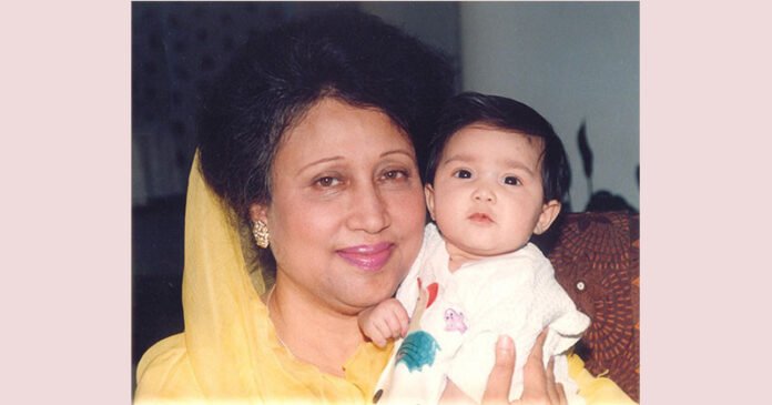 দাদুকে নিয়ে তার সবচেয়ে প্রিয় স্মৃতিগুলোর একটি হলো অভিভাবক হিসেবে খালেদা জিয়ার মমতাময়ী রূপ। তিনি উল্লেখ করেন, তার বয়স যখন এগারো, তখন স্কুল ফুটবল টিম একটি টুর্নামেন্ট জিতলে তিনি মেডেল পান। মা ডা. জুবাইদা রহমান তাঁকে সরাসরি দাদুর অফিসে নিয়ে যান; যেন তিনি নিজেই দাদুকে বিজয়ের গল্পটি বলতে পারেন। গোলকিপার হিসেবে কীভাবে খেলেছেন সে কথা উচ্ছ্বাসের সঙ্গে বলার সময় তিনি অনুভব করেছিলেন দাদু গভীর মনোযোগ দিয়ে তাঁর কথা শুনছেন। পরে সেই গল্প অন্যদের কাছেও গর্বের সঙ্গে বলতেন খালেদা জিয়া।
