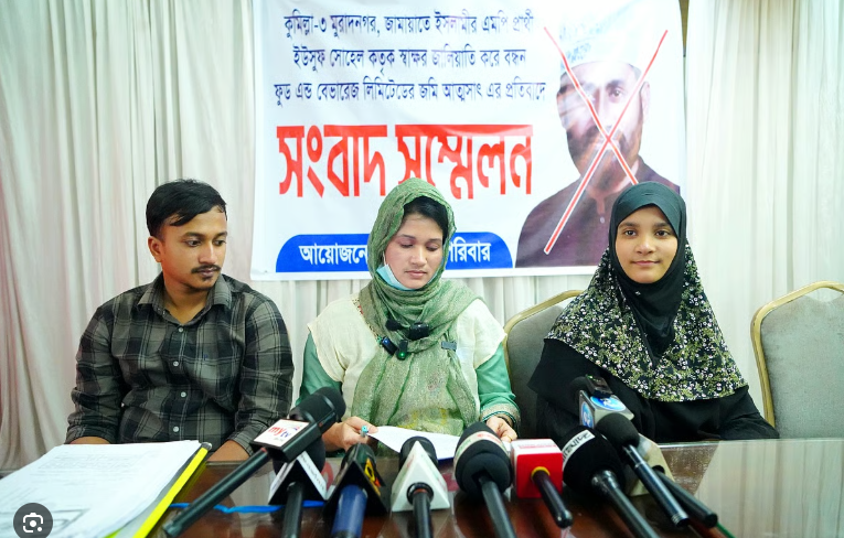 কুমিল্লা-৩ (মুরাদনগর) আসনে জামায়াতে ইসলামী মনোনীত সংসদ সদস্য প্রার্থী ইউসুফ হাকিমের (সোহেল) বিরুদ্ধে স্বাক্ষর জালিয়াতি করে জমি আত্মসাতের অভিযোগ করেছেন এক নারী। বুধবার বিকেলে কানিজ ফাতিমা নামের এক নারী সংবাদ সম্মেলন করে এ অভিযোগ করেন। তবে ইউসুফ হাকিম অভিযোগকে সম্পূর্ণ মিথ্যা ও রাজনৈতিক ষড়যন্ত্র বলে দাবি করেন।